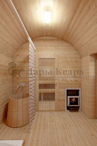 Создаст приятную атмосферу с приглушённым светом, а также визуально расширит пространство парной.