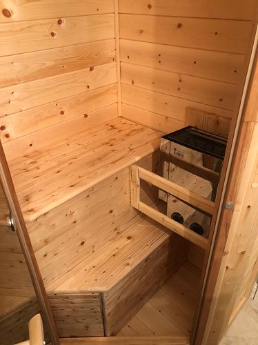 Компактно достаточно разместилась угловая сауна у нас в ванной комнате, брали одноместную с карбоновыми нагревателями. Греет по ощущениям не сильно жарко, но нам такую и надо было, чтобы и дети, и пожилые родители смогли принимать процедуры. Щадящая сауна - то, что нужно! Погреться после зимних интенсивных прогулок с чашкой ароматного чая - просто супер! Нам всем нравится. Рекомендую!