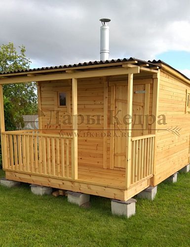 Баню сделали за месяц, доставка в течение 10 дней до Москвы. Установка заняла около часа. Нагревается быстро, пахнет кедром! На маленькой веранде отдыхаем после парения. Мы довольны, рекомендуем!
