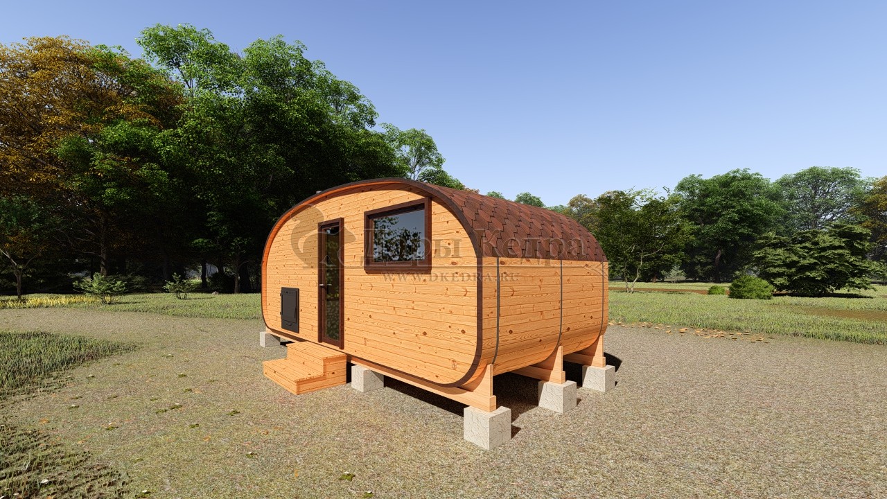 Баня-бочка представляет собой конструкцию в виде бочонка без углов. Такая форма считается оптимальной для равномерного распределения пара по всей внутренней поверхности парной. Таким образом, пар не скапливается в одном месте, а циркулирует по всему объему. Соответственно, круглая (квадратная, овальная) баня экономичная: топится быстро, требует дров мало.